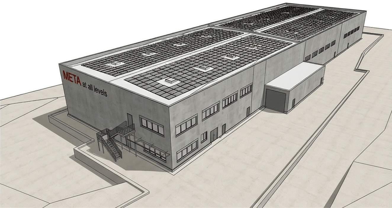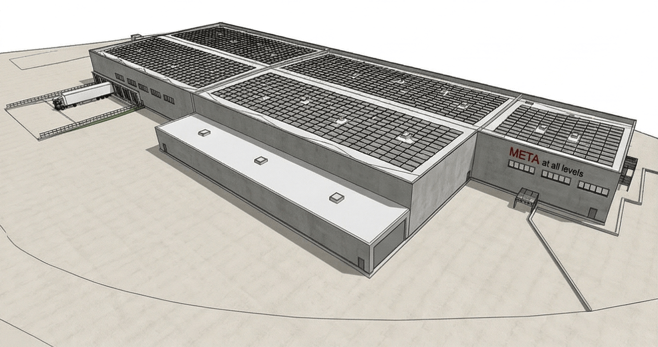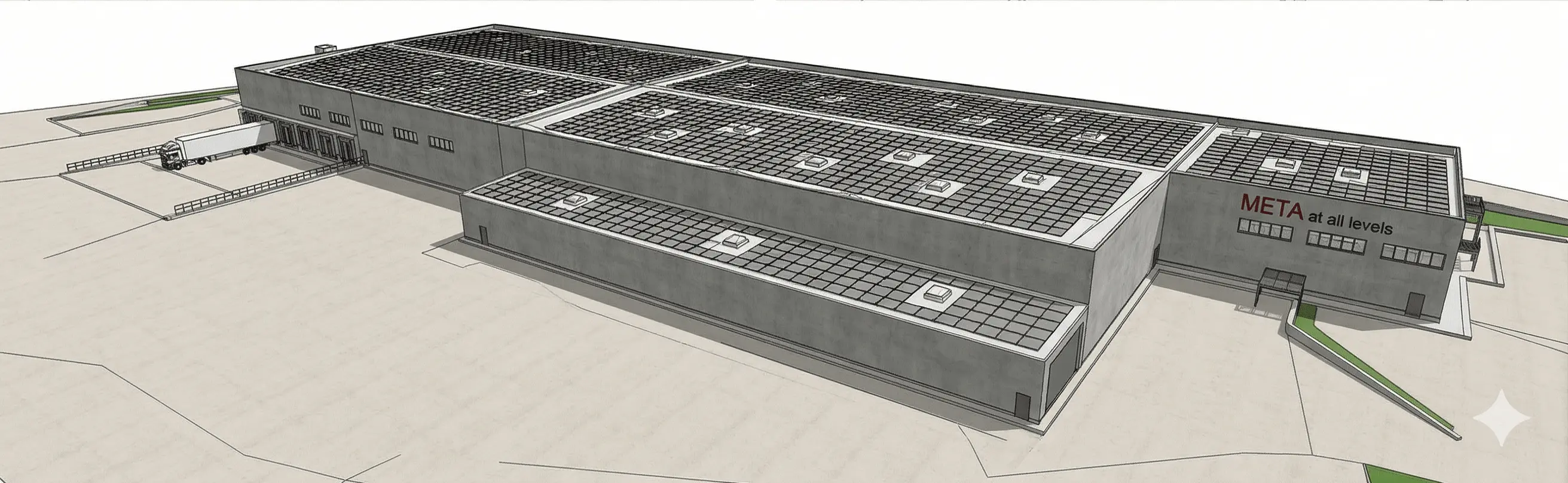 META Plant II is an industrial hall project with large warehouse areas. The analysis focused specifically on the heating system of the main halls — both heat generation and heat distribution. Secondary spaces were excluded so the analysis could concentrate on the systems with the greatest economic impact.